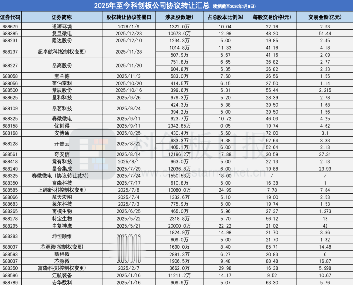 从上述案例来看,共约有四家科创板公司,分别为超卓航科、上纬新材、芯源微、富淼科技的控制权在2025年通过股权转让发生变化。